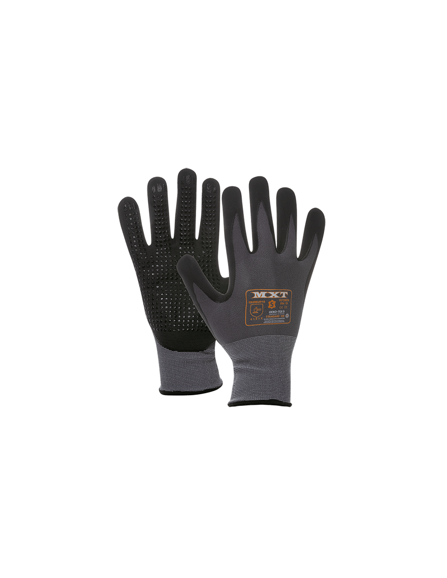 Optez pour le gant 5072MFN de la marque SACOBEL. Il est équipé d'une enduction paume et doigts, avec picots. Il est également normé EN 388:2016+A1:2018.