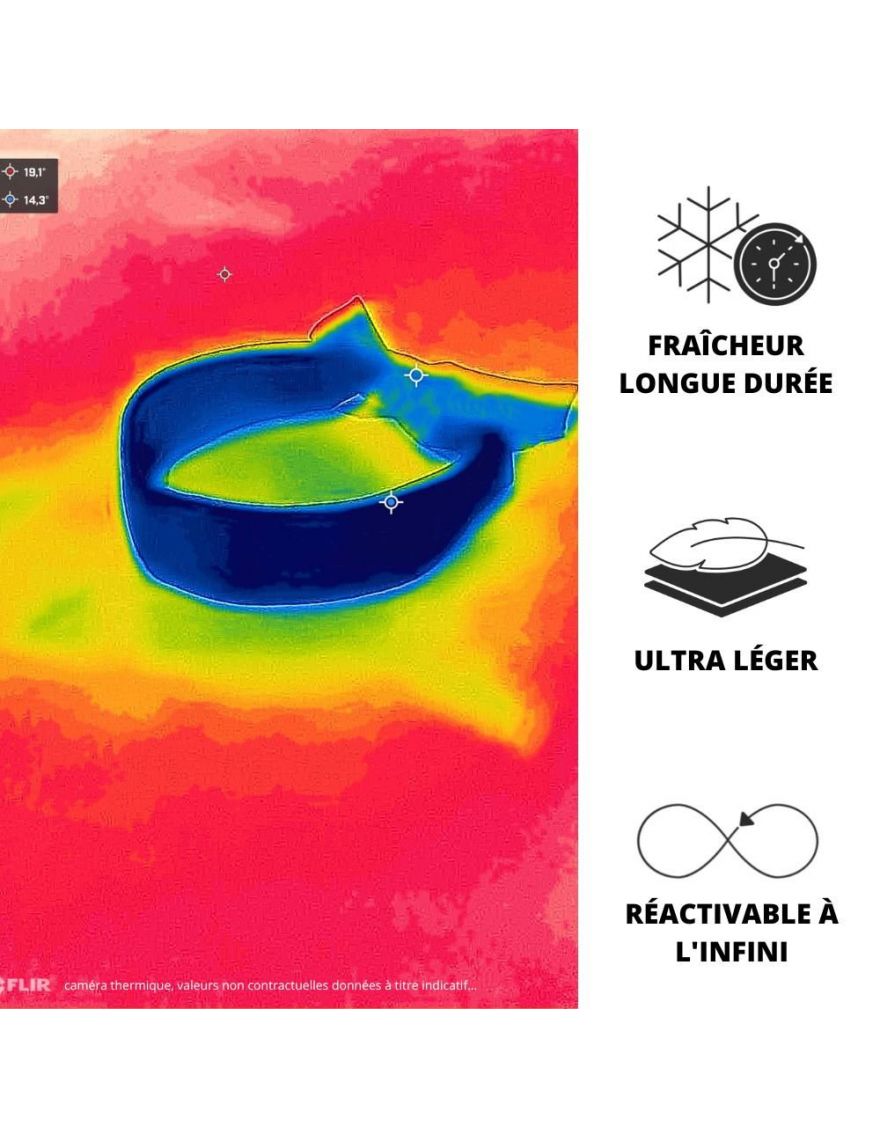Activable et réactivable à l'infini, il dispose d'une autonomie de plusieurs heures selon la température ambiante. Vous avez le choix entre 2 coloris : bleu ou noir.