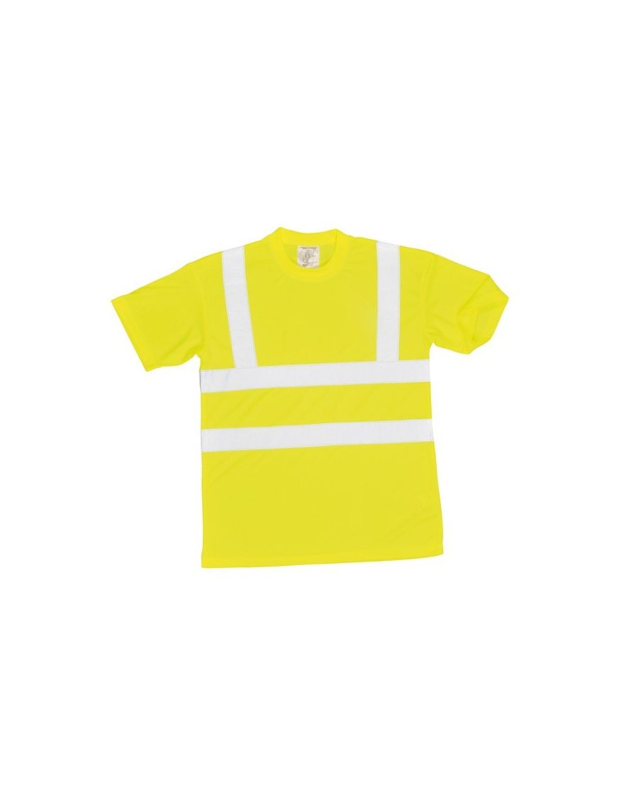 Tee-shirt haute visibilité en maille type nid d'abeille. Bandes rétro-réfléchissantes collées et cousues.