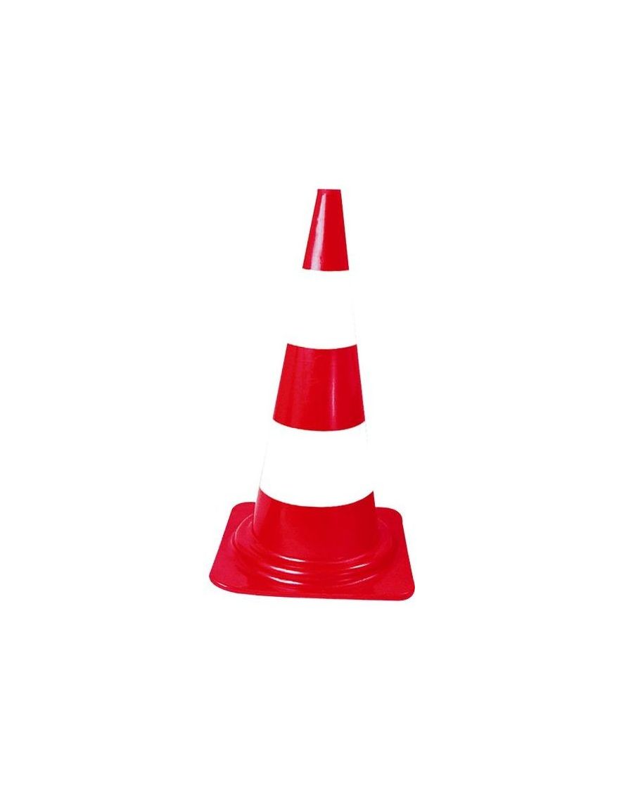 Cône fluorescent polyéthylène avec bandes blanches sérigraphiées. Hauteur 50cm.