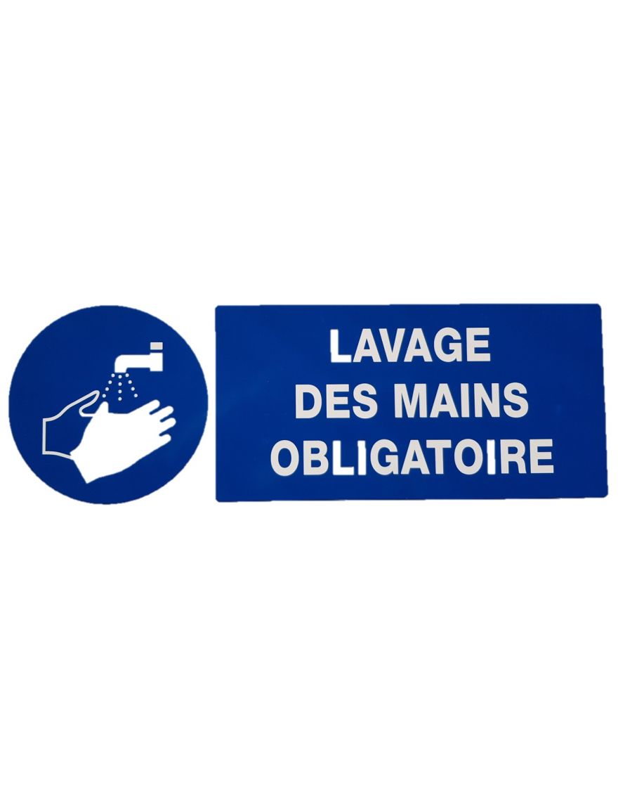 Panneau de signalisation PVC «Obligation de se laver les mains » Taliaplast. De dimension 330 x 120 millimètres. Pour indiquer l'obligation de se laver sur le lieu de travail, type hôpital, usine agroalimentaire.