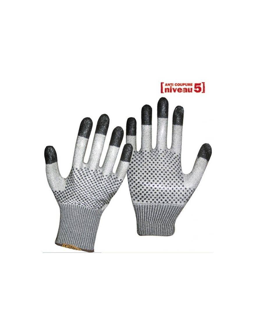 Gants de travail anti-coupure GT-425. Ces gants sont souples et ambidextres pour une dextérité maximale et une bonne préhension grâce au picot PVC sur les deux faces. Le bout des doigts sont enduit en nitrile, ralentissant sa dégradation. Le fil TAEKI 5 permet une résistance maximale à la coupure ainsi qu’à la déchirure. Poignet élastiqué pour un confort et un maintien maximal !