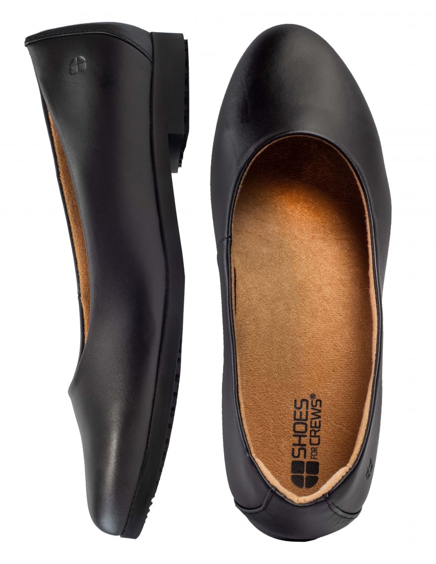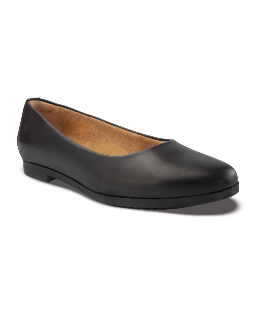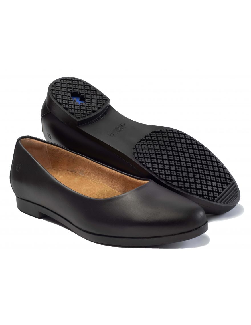 Chaussure de travail femme REESE Shoes For Crews. Ces chaussures sont élégantes et ultra-confortables. Le talon est équipé d’une technologie permettant d'accroître le confort via un amorti renforcé. En plus d’être antidérapantes, ces ballerines sont réalisées en matières hydrofuges elles sont donc résistantes à l’eau ! Normée EN ISO 20347:2012 - OB - E - SRC