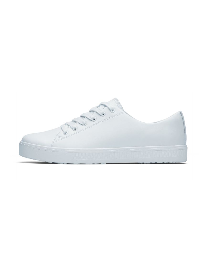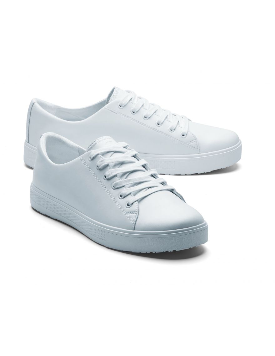 Les chaussures de travail antidérapantes mixtes Shoes For Crews - OLD SCHOOL blanches sont l'allié de vos journées intenses. Elles possèdent un système de semelle extérieure profilée réduisant les risques de trébuchement, en garantissant de l’adhérence sur les sols glissants. Avec une tige en cuir résistante à l'eau et un confort agréable grâce à l'amorti et la semelle intérieure matelassée amovible, elles vous assurent un bon maintien.