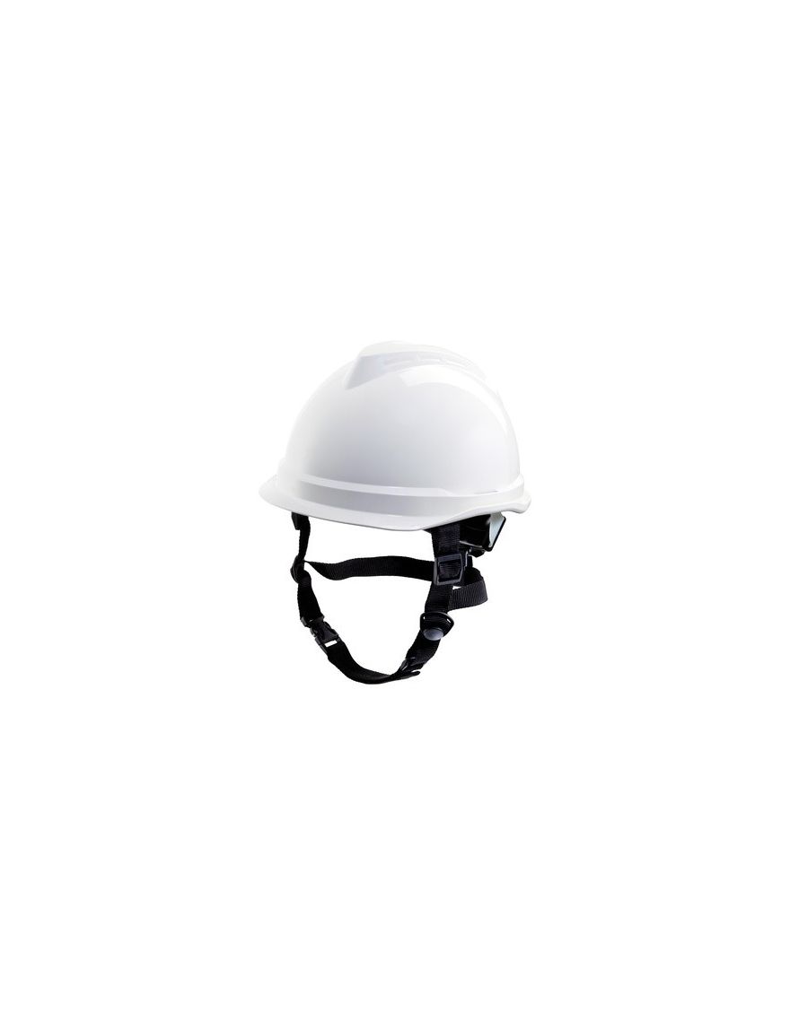 Casque de sécurité sans visière/casquette non ventilé pour les travaux en hauteur ou espaces confinés. Jugulaire 4 points. Calotte en ABS avec agents stabilisateurs d'UV offrant une bonne résistance aux rayures. Coiffe Fas-Trac® III (à réglage crémaillère/molette). Bandeau en mousse absorbant la transpiration, lavable et remplaçable.