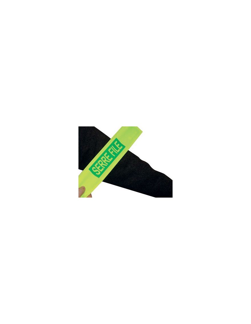 Brassard automatique auto-enroulant. Inscription "Guide file". En tissu Polyester. Enduit PVC Fluorescent “EN 471”. Dimensions : 350 x 70 mm.