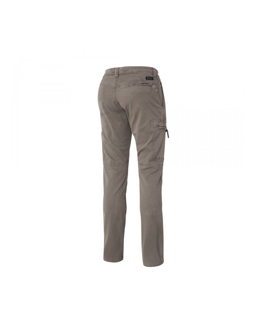 Ceinture 5 passants, braguette zippée, 2 poches italiennes, 2 grandes poches cuisses zippées dont surpoche smartphone à droite fermée par velcro, poche dos zippée à droite, renforts genoux doublé en tissu ripstop avec pinces, réhausse dos.