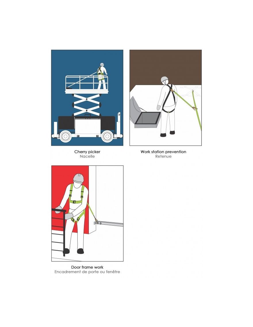 Ce harnais est recommandé pour l'usage sur nacelles, sauvetage, espaces confinés, constructions, BTP, toitures, télécommunications, plates-formes, industrie.