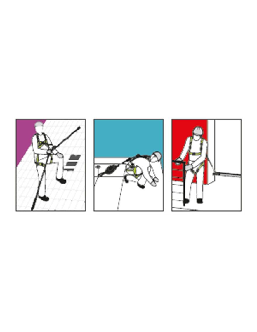 L’antichute répond à la norme EN 360:2002, VG11.060, avec une résistance supérieure à 15 kN. Il est homologué pour une personne qui pèse jusqu’à 140 kg, en utilisation verticale ou horizontale.
