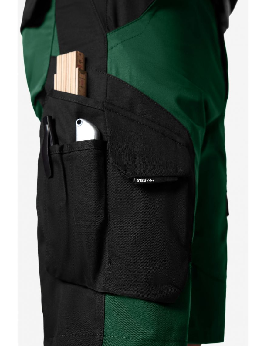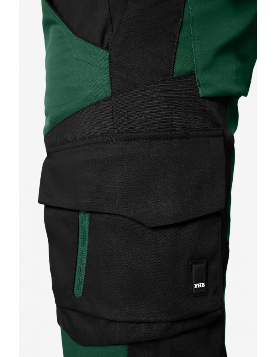 Le pantalon de travail multipoches FHB - FLORIAN est fabriqué dans un mélange de coton et de polyester, et garantit une liberté de mouvement grâce à des zones latérales élastiques.