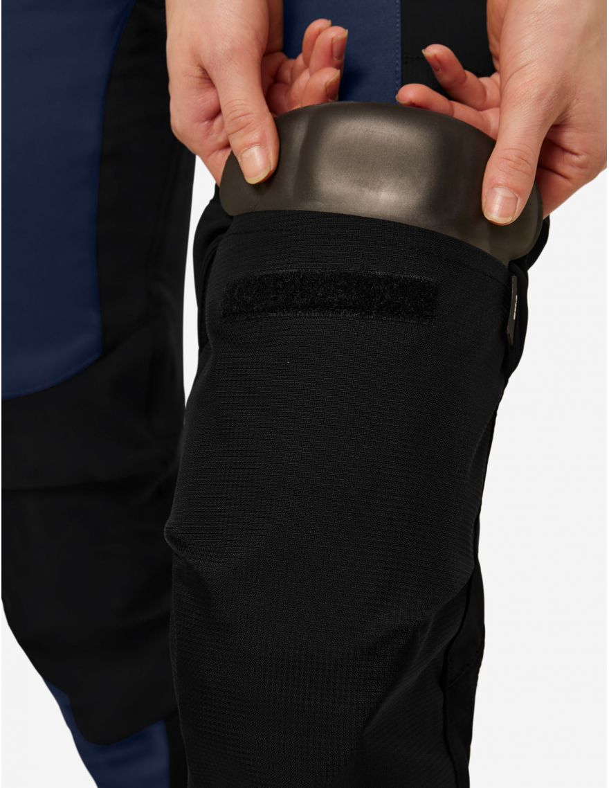 La poche ouverte sur le dessus permet de glisser facilement des genouillères pour un confort durable lors des travaux au sol. Enfin, les deux poches arrière à rabat offrent davantage rangement sécurisé.