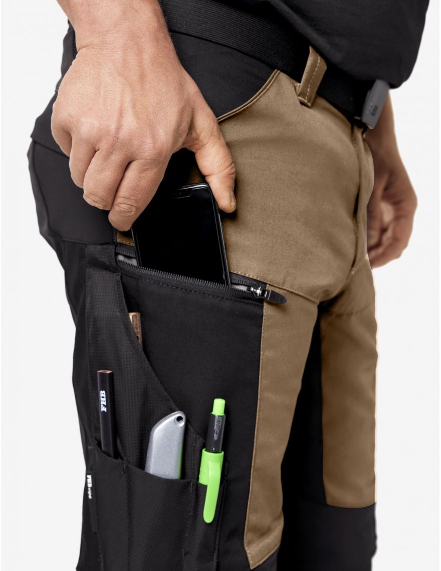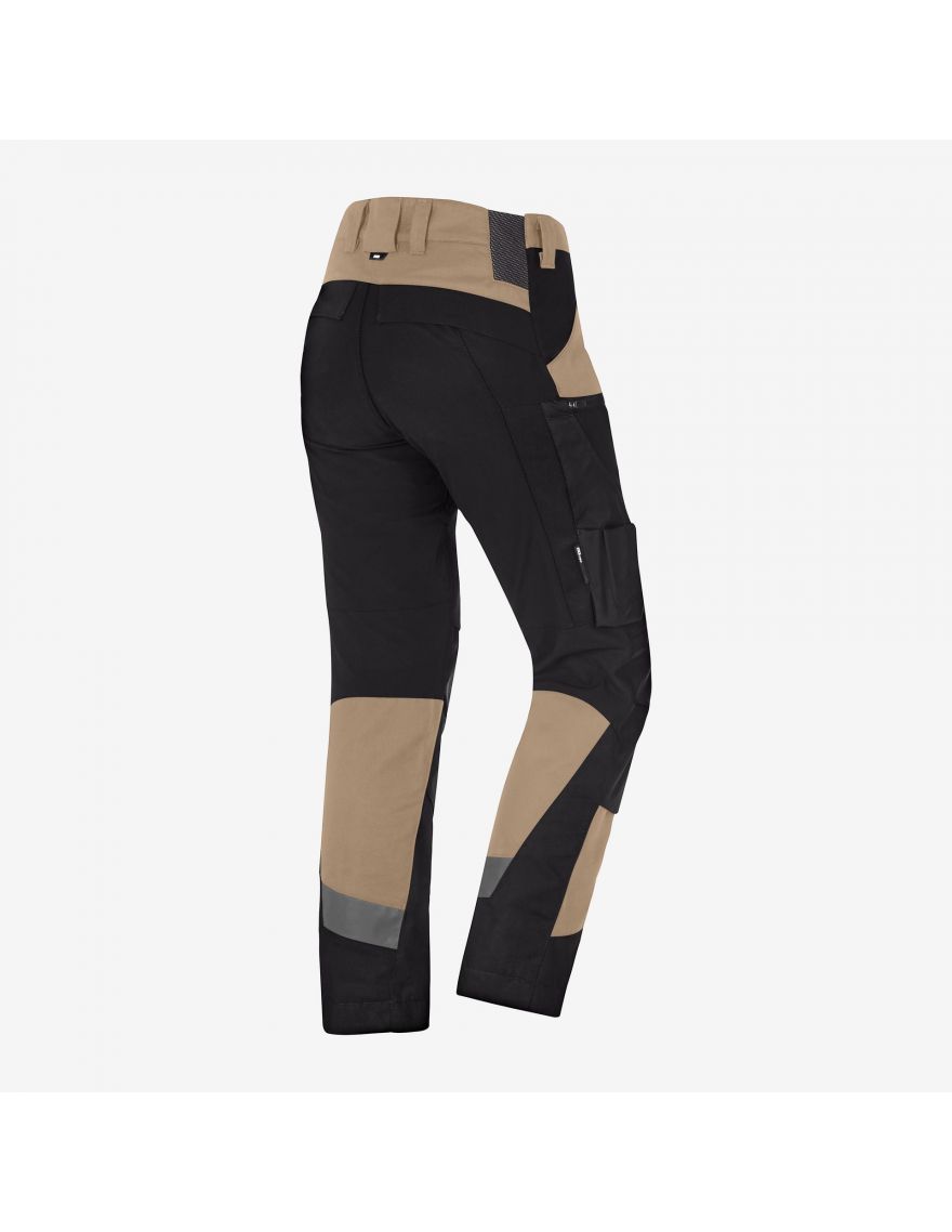 La poche ouverte sur le dessus permet de glisser facilement des genouillères pour un confort durable lors des travaux au sol. Enfin, les deux poches arrière à rabat offrent davantage rangement sécurisé.