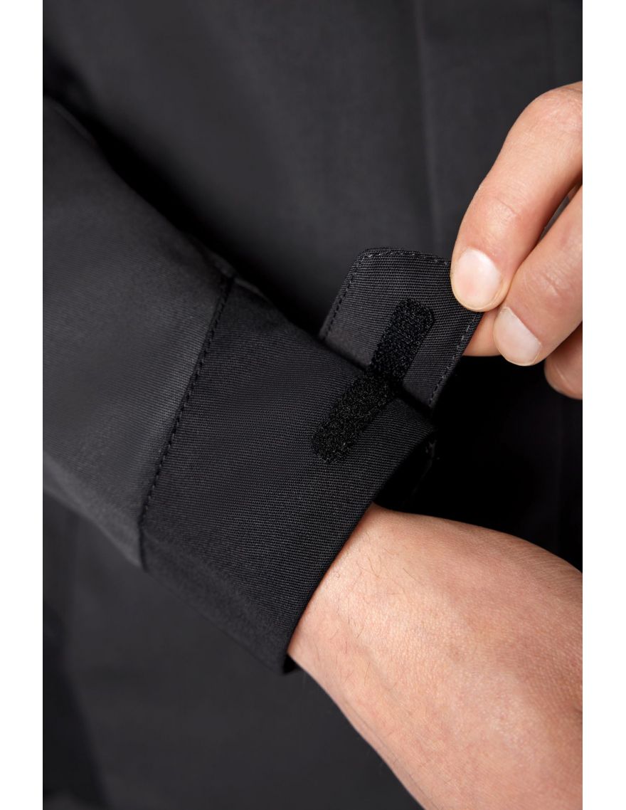 Sa coupe ergonomique garantit un ajustement parfait, et les empiècements élastiques offrent une liberté de mouvement. Cette veste se distingue aussi par ses différentes poches pratiques : quatre poches avant dissimulées et refermables pour un rangement sécurisé, une poche poitrine dédiée à votre téléphone portable, et quatre poches stylo sur la manche pour un accès rapide à vos affaires.