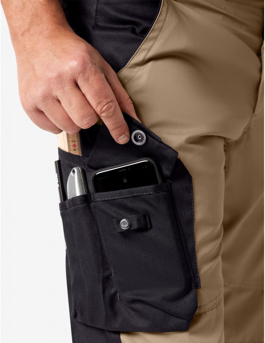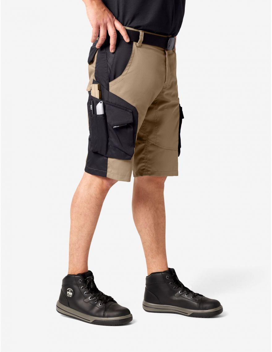 Pensé pour les métiers qui utilisent différents outils, ce bermuda dispose de nombreuses poches fonctionnelles. À gauche et à droite, une poche est conçue pour un téléphone portable et un mètre pliant. De plus, des compartiments complémentaires pour crayon, cutter ou couteau sont intégrés sur le côté gauche, avec un accès rapide.