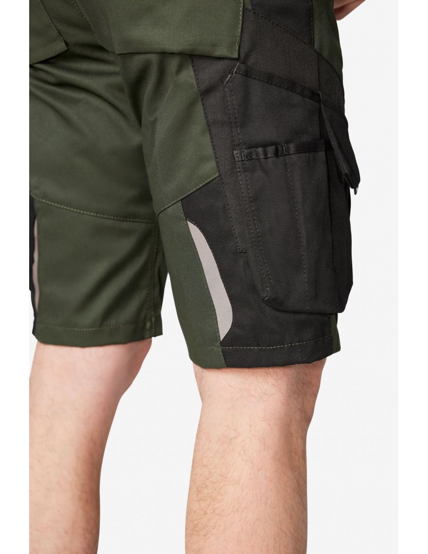 Pensé pour les métiers qui utilisent différents outils, ce bermuda dispose de nombreuses poches fonctionnelles. À gauche et à droite, une poche est conçue pour un téléphone portable et un mètre pliant. De plus, des compartiments complémentaires pour crayon, cutter ou couteau sont intégrés sur le côté gauche, avec un accès rapide.