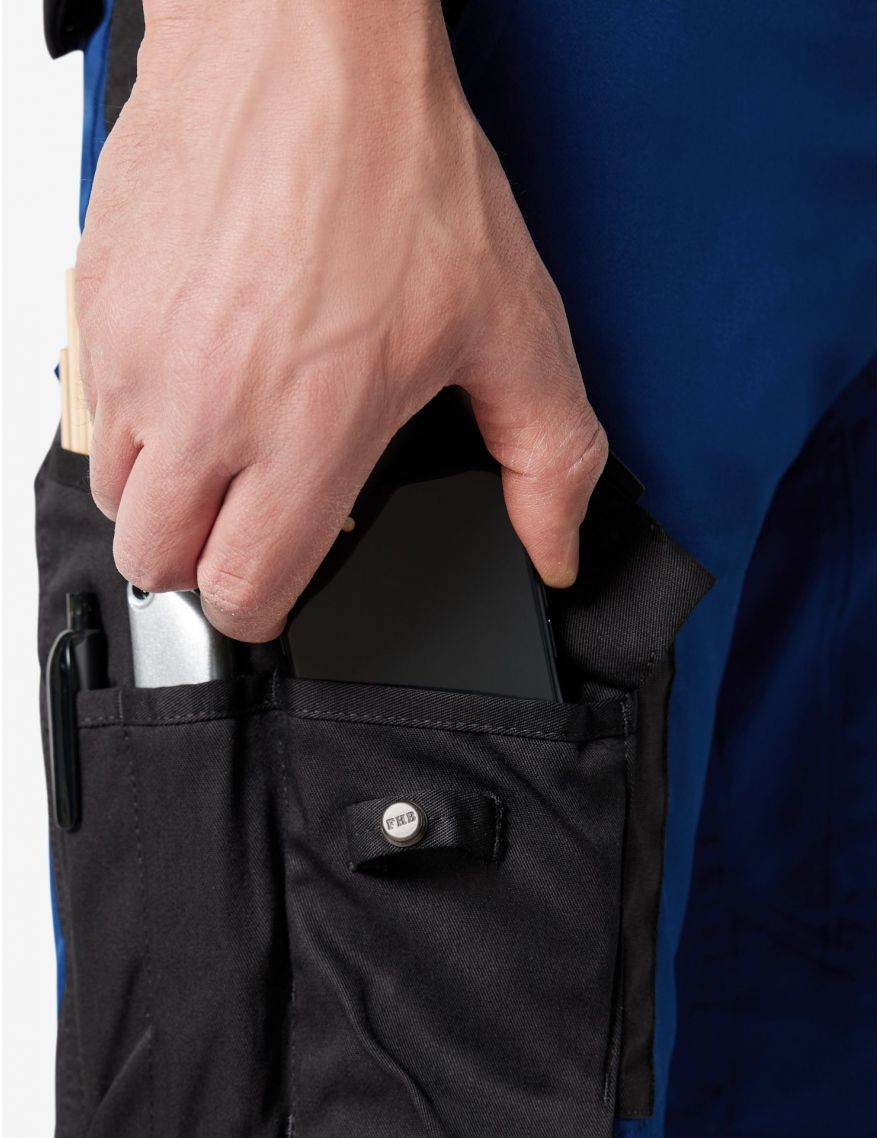 Pensé pour les métiers qui utilisent différents outils, ce bermuda dispose de nombreuses poches fonctionnelles. À gauche et à droite, une poche est conçue pour un téléphone portable et un mètre pliant. De plus, des compartiments complémentaires pour crayon, cutter ou couteau sont intégrés sur le côté gauche, avec un accès rapide.