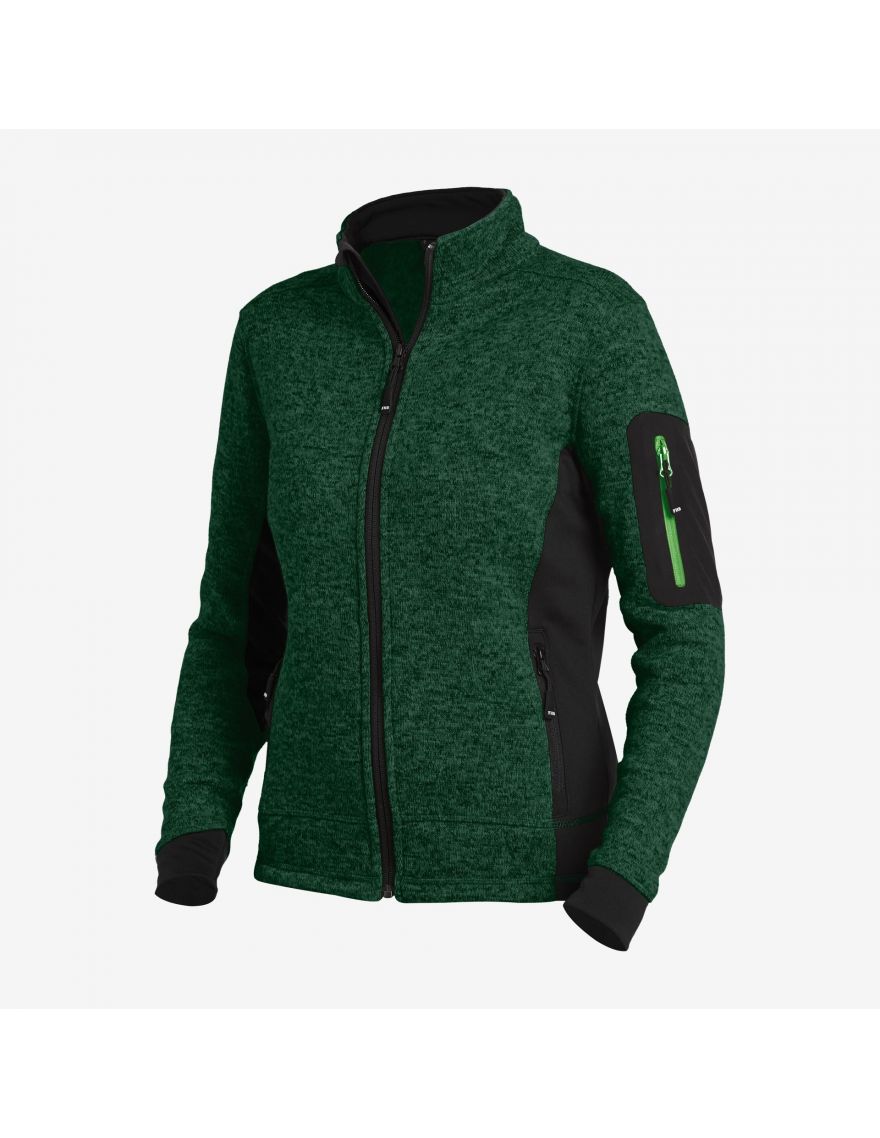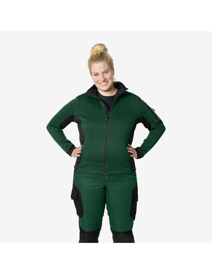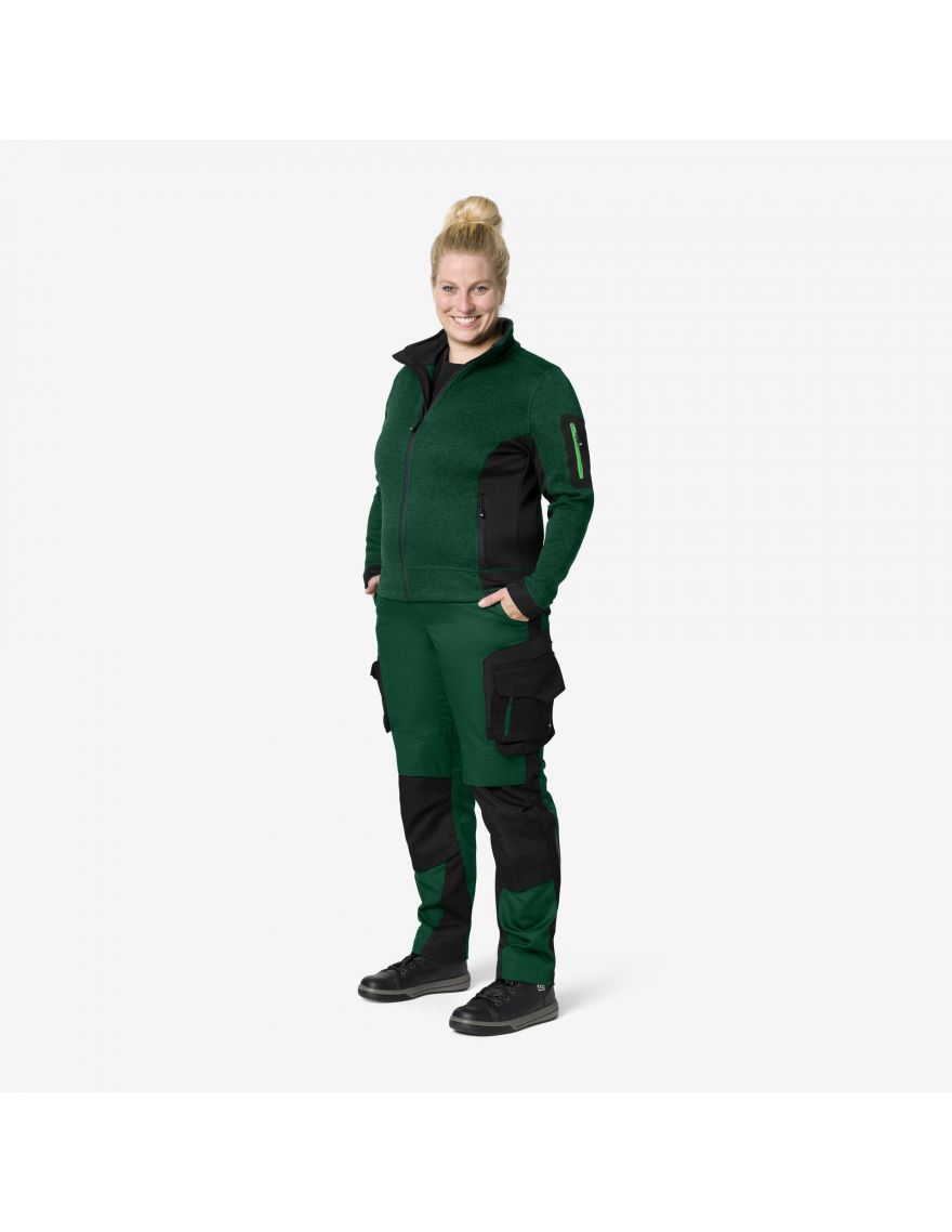 La Veste en tricot polaire pour femme FHB - MARIEKE est légère et s'adapte à vos mouvements en vous offrant chaleur et douceur. Sa coupe moderne, près du corps, met en valeur la silhouette tout en restant fonctionnelle grâce à ses zones latérales élastiques noires, qui garantissent une liberté de mouvement.