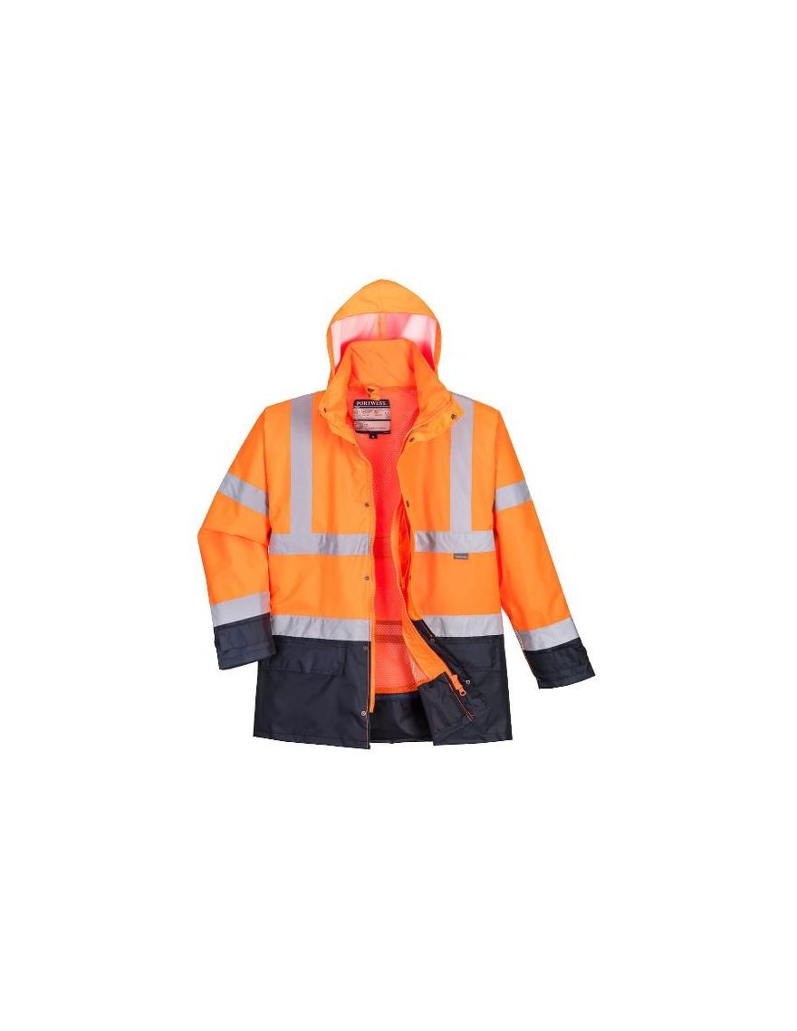 Cette parka 5-en-1 EXECUTIVE S768 de chez Portwest au style innovante est adaptable pour de multiples utilisations. Le vêtement extérieur contient 2 grandes poches basses à rabat bandes auto-aggrippantes et une capuche intégrée pendant que le vêtement intérieur offre des manches polaire détachables, 2 grandes poches latérales et une certification pleine en EN ISO 20471 Classe 3.