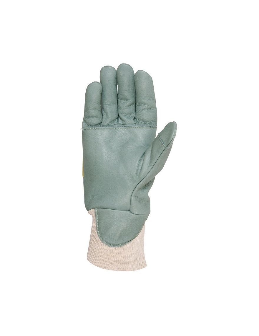 Ce modèle se différencie par son renfort intérieur au dos, constitué de 14 couches de matériaux résistants aux tronçonneuses, avec une couche de doublure Kevlar et une toile complémentaire sur la main gauche.