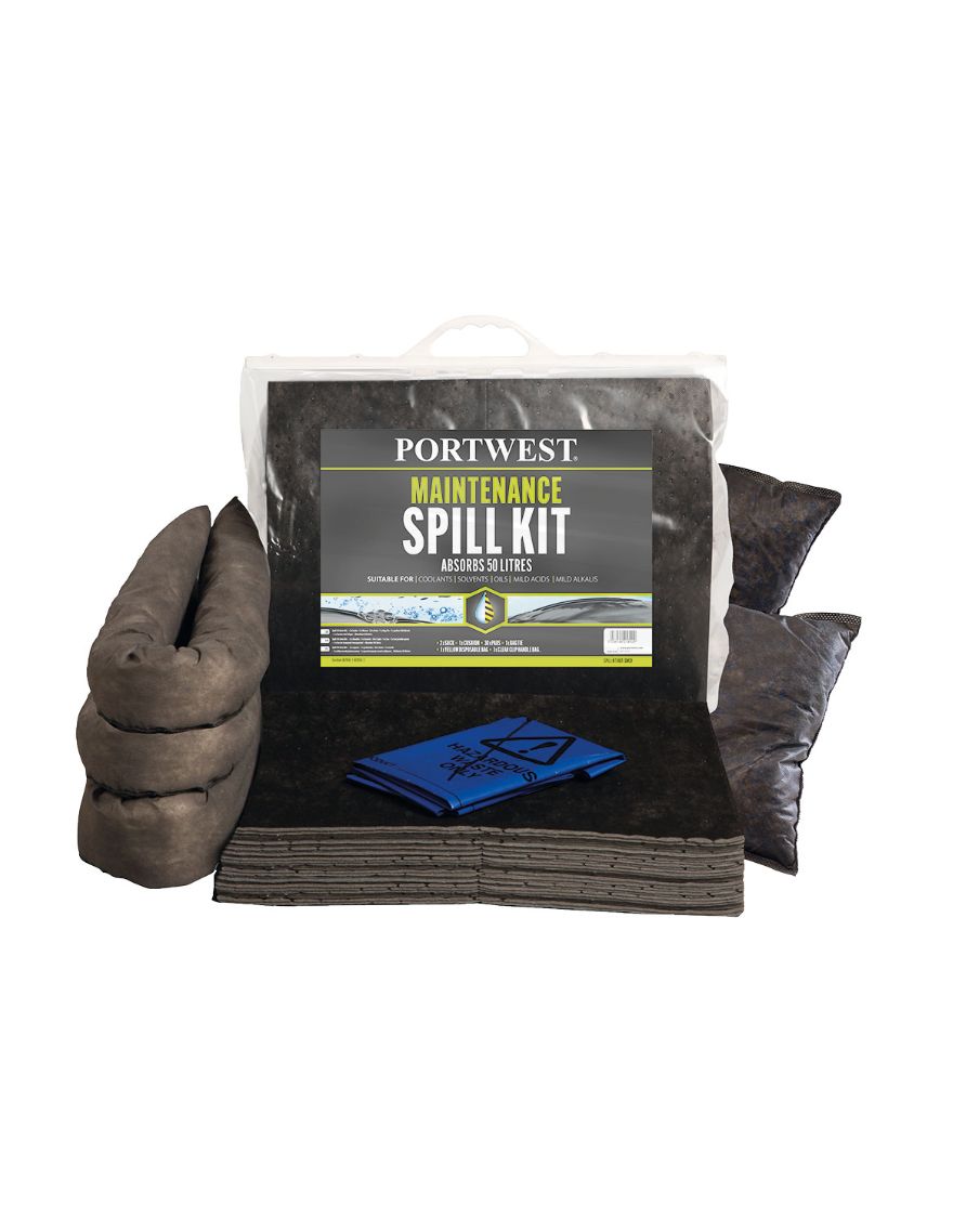 Kit permettant d'agir rapidement ou comme mesure de précaution en cas de déversements de toutes sortes de liquides industriels à base d'eau et les écoulements à base d'huile. Ce kit est recommandé dans les secteurs suivants : fabrication industrielle, logistique et transport... Il permet l’absorption des gouttes sur les machines, le nettoyage de surfaces ou pièces souillées, la protection des sols ou protection sur les établis et plans de travail.