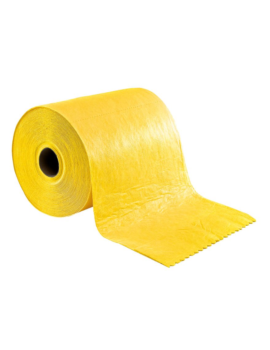 Les rouleaux absorbants produits chimiques (code couleur jaune) permettent d'absorber la plupart des produits chimiques, acides, solvants, bases et autres liquides corrosifs.