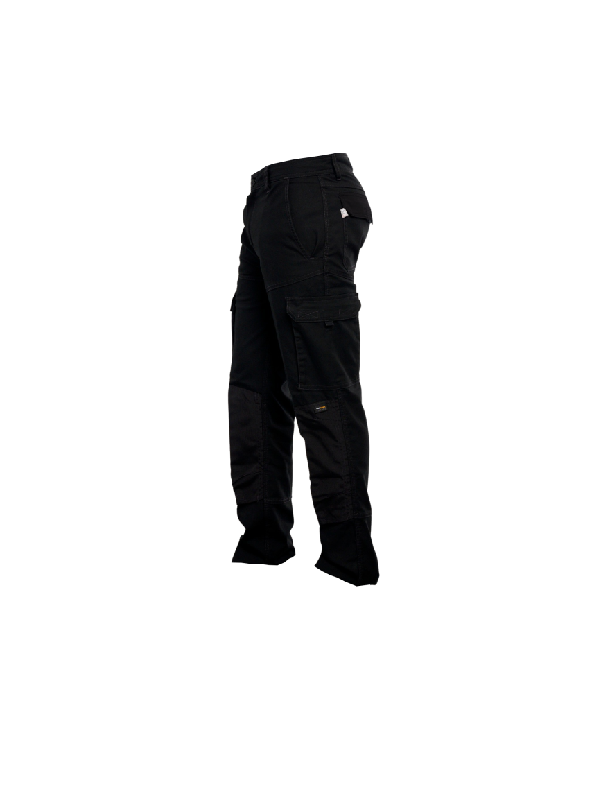 Ce modèle présente des poches cuisse avec rabat et soufflets, qui offrent un autre espace de rangement pour vos accessoires. Les poches genouillères en Cordura® ajoutent une protection aux zones de friction. Avec une coupe ajustée et des triples piqûres renforçant la solidité de l’ensemble.