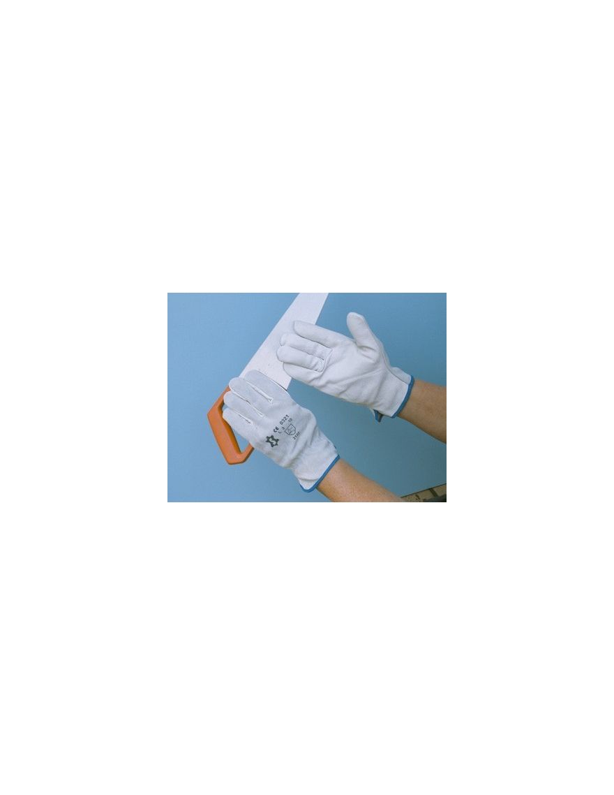 Gant de manutention en cuir fleur et croute de la marque SACOBEL de qualité supérieure, Elastique de serrage sur le dos, au niveau du poignet. Coutures renforcées. Sans silicone.
