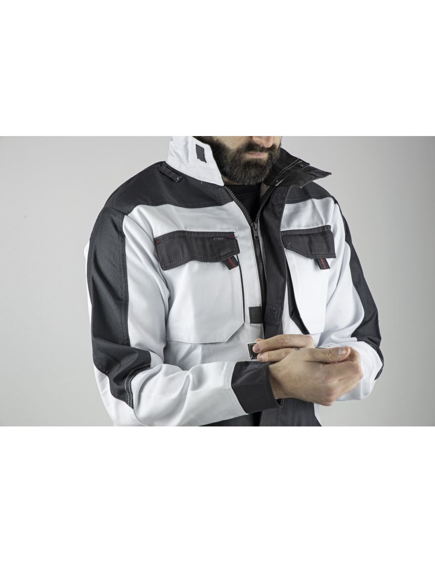 Ses multiples poches, dont deux poches poitrine à soufflets et rabats, une poche intérieure et deux poches basses repose-main, offrent une organisation de vos outils et affaires personnelles. Une ouverture permet aussi d'utiliser un kit mains-libres.