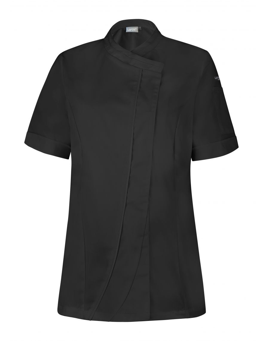 La veste de cuisine pour femme Lafont 27GINSENG allie élégance et fonctionnalité dans un design moderne et raffiné. Elle présente une coupe croisée pratique, fermée par des grippers cachés, pour un confort agréable pendant la journée. Son double empiècement au milieu devant, agrémenté d'un angle bas contrasté, et le biais contrasté sur toute la hauteur apportent une touche de style subtile.