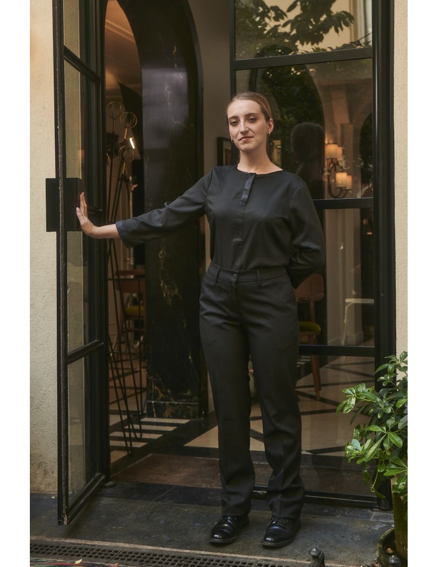 Le Top pour femme à manches longues Lafont - 22VIENNA est la pièce pour allier élégance et confort au quotidien. Ce modèle au design épuré se différencie par un col rond orné d'un biais satin, qui offre une touche de sophistication. Les finitions des manches 3/4, élégantes et pratiques, se concluent par un bas en satin complétant ce style épuré.