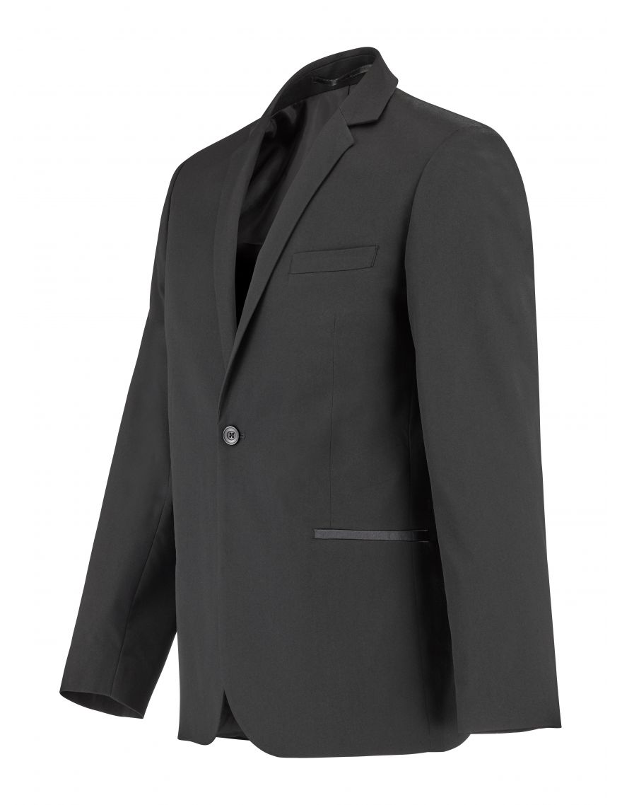 Les entrées de poches basses en satin ajoutent du raffinement, et les quatre boutons en bas de manche apportent une finition irréprochable. La fermeture par un bouton unique et les découpes sur le devant et le dos assurent une allure élégante. Une fente au dos complète ce modèle, pour offrir liberté de mouvement et confort.