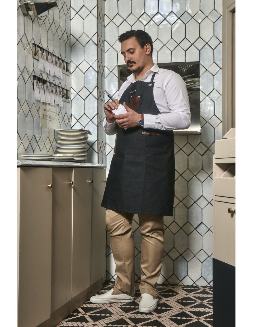 Les poches en simili cuir, ornées de rivets, offrent un espace de rangement pratique pour vos affaires, afin que vous ayez tout sous la main, en gardant les mains libres. Idéal pour les professionnels de la restauration, du bar ou toute activité qui nécessite une tenue pratique et robuste, il vous permettra de travailler en liberté sans compromettre votre look.