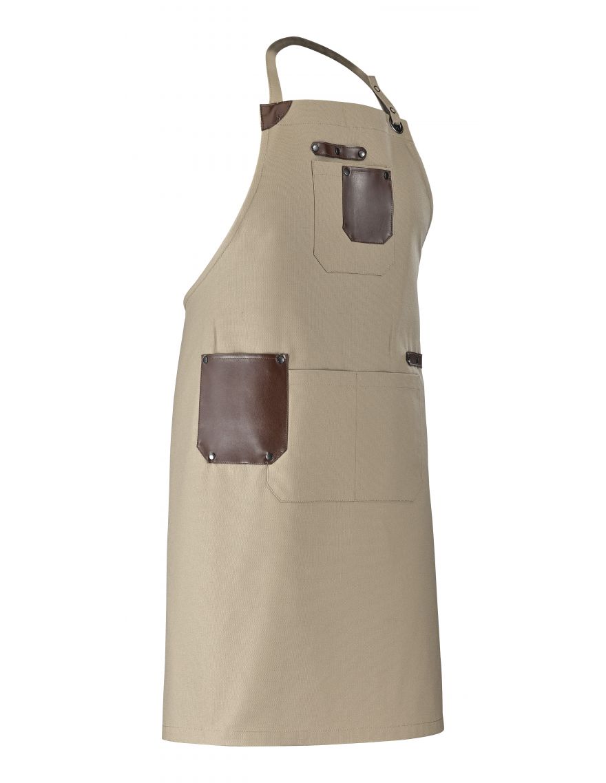 Les poches en simili cuir, ornées de rivets, offrent un espace de rangement pratique pour vos affaires, afin que vous ayez tout sous la main, en gardant les mains libres. Idéal pour les professionnels de la restauration, du bar ou toute activité qui nécessite une tenue pratique et robuste, il vous permettra de travailler en liberté sans compromettre votre look.