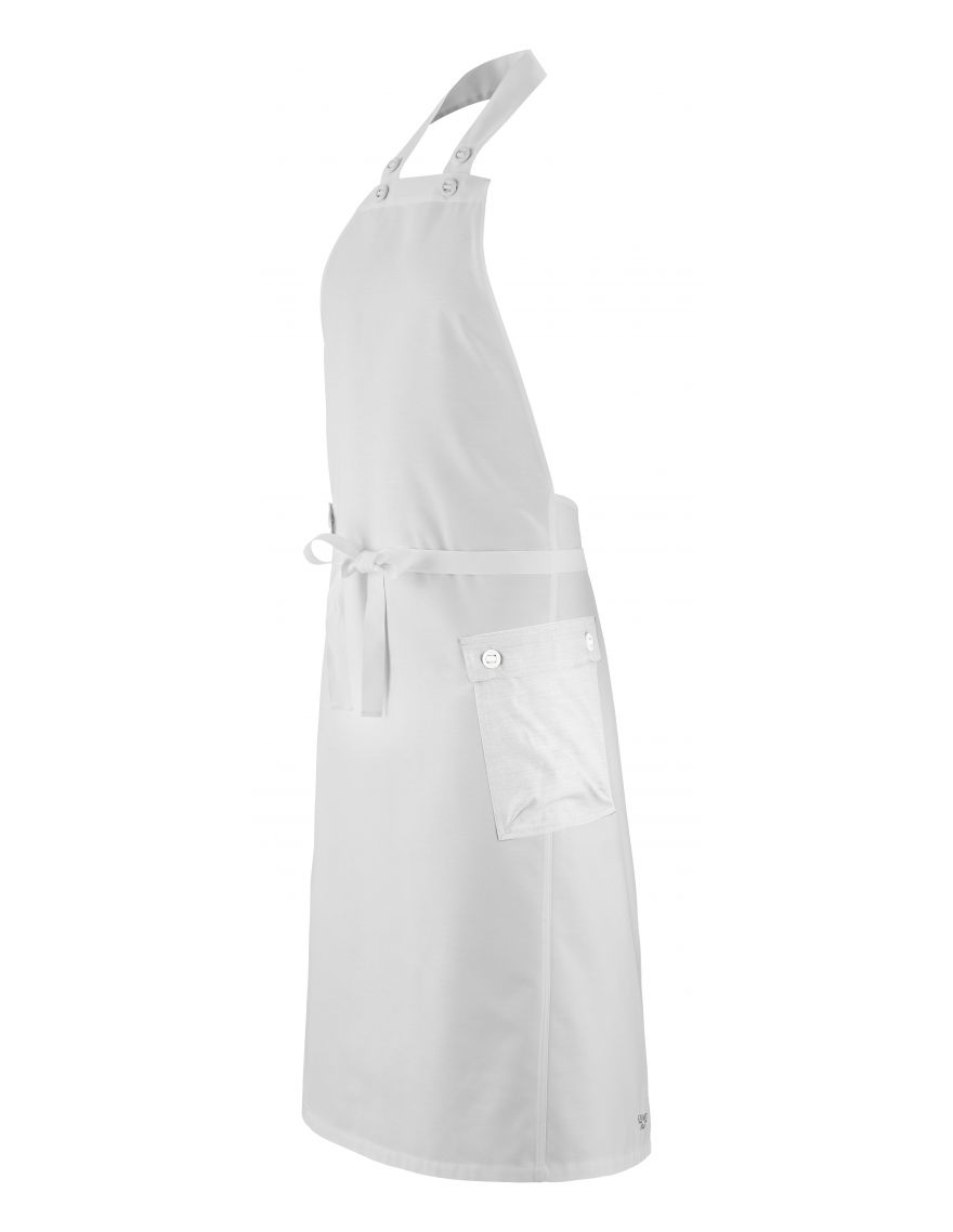 Pensé pour faciliter le quotidien des cuisiniers, il présente une poche plaquée fermée par un rabat sécurisé par des boutons en bio résine, idéale pour y glisser des ustensiles à portée de main. Le passe torchon intégré et l’étiquette drapeau rappellent le respect aux valeurs durables et responsables. Sa hauteur de 110 cm et sa largeur de 97 cm offrent une coupe convenant à différentes morphologies.