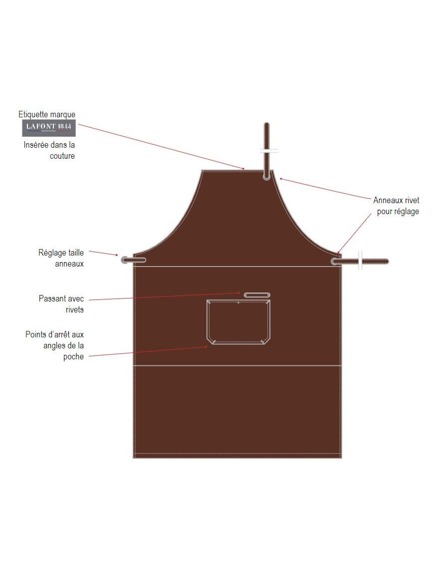 Le tablier de cuisine Lafont - 27CORIUM est un accessoire essentiel pour les professionnels de la cuisine en quête d'un produit pratique, résistant et élégant. Conçu avec un design soigné, il présente des caractéristiques techniques qui permettent une utilisation optimale et durable.
