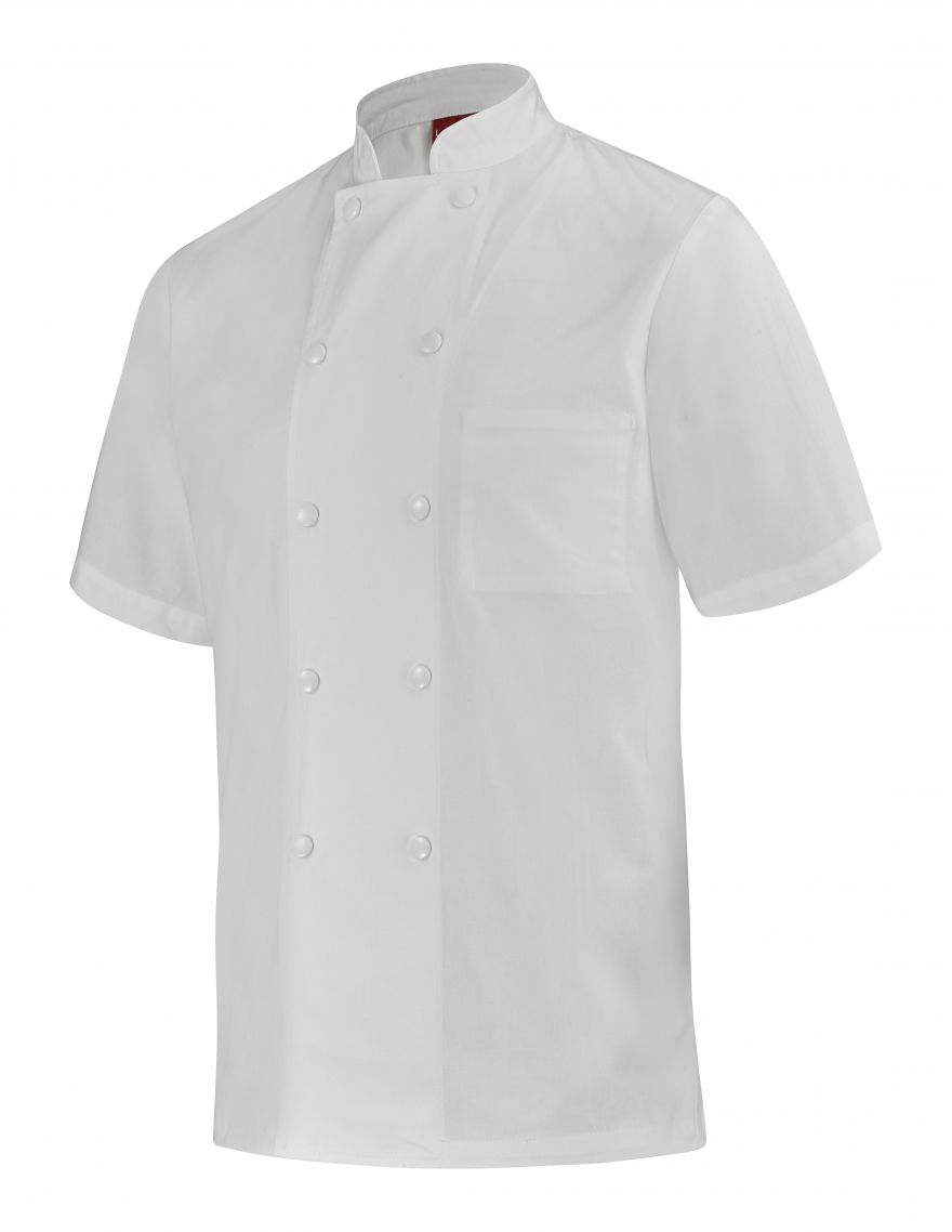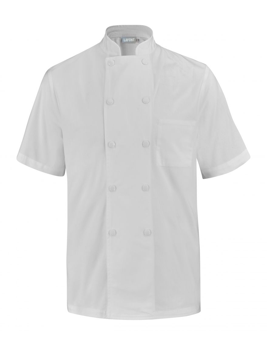 La Veste de cuisine pour homme Lafont - 27PEELER allie confort, praticité et élégance. Conçue pour répondre aux besoins des chefs et des cuisiniers, elle se différencie par son col officier moderne et sa double fermeture par grippers à calotte blanche, assure un maintien sécurisé et ajoute une touche sophistiquée à votre tenue de travail. Les manches montées courtes offrent une liberté de mouvement agréable, idéale pour vos journées de travail.
