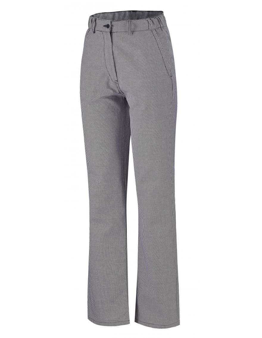 Le Pantalon de cuisine pour femme Lafont - 27HELENA est la pièce pour les professionnelles en quête de confort et d'élégance en cuisine. Alliant praticité et style, il possède une ceinture élastiquée sur les côtés avec 5 passants, qui assurent un maintien et un ajustement optimal.