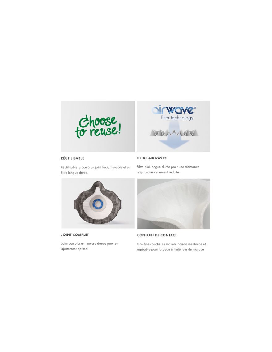 - Filtre de fabrication allemande : conçu et produit par Moldex.