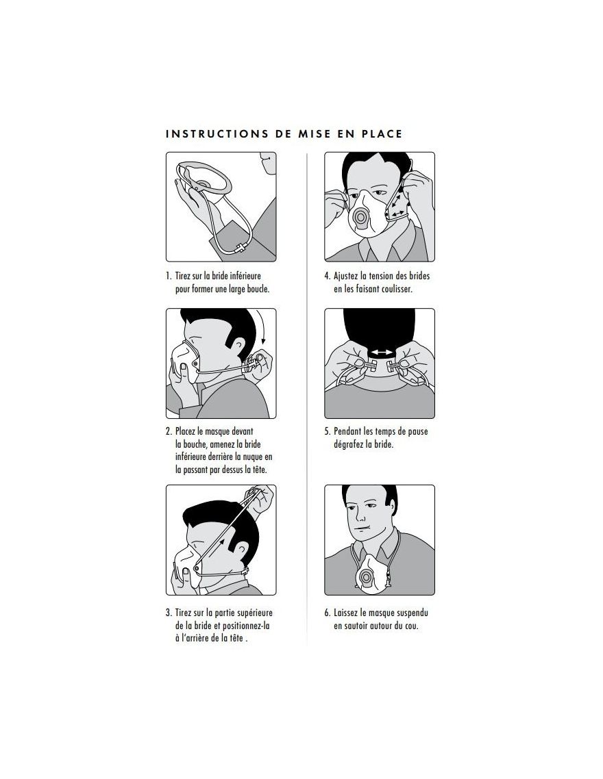 - Clip d’attache : permet de porter le masque en sautoir pendant les pauses.