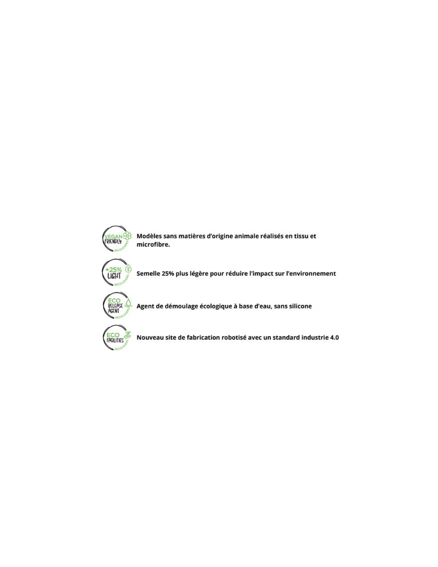 Il est recommandé pour les entretenir de nettoyer périodiquement les sillons de la semelle et de la tige en utilisant des matériaux non agressifs qui pourraient en compromettre la qualité, sécurité et la durée de vie de la chaussure. Il est déconseillé de l'essuyer à proximité ou à contact direct avec la chaleur.