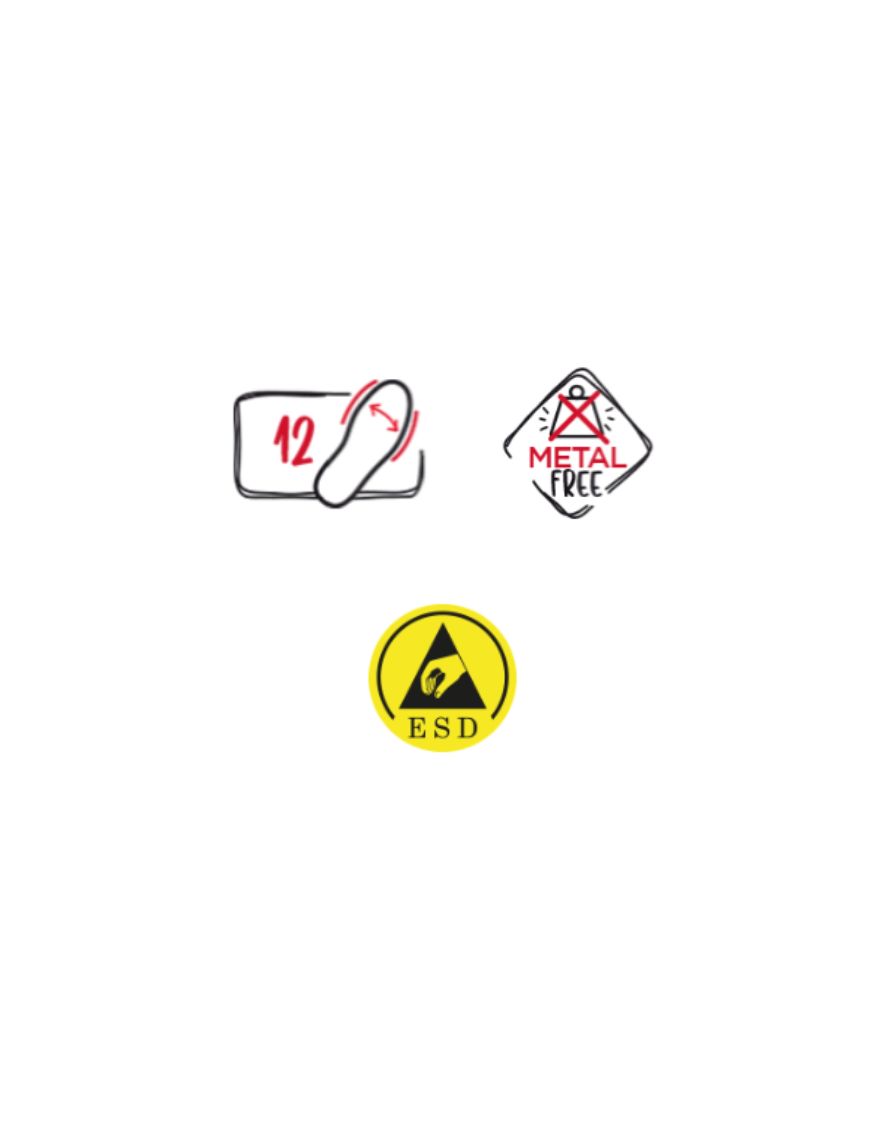 Conformes à la norme ESD, elles assurent une dissipation efficace des charges électrostatiques, idéales pour les environnements sensibles. Embout large. Normes : EN ISO 20345 - S3 - SRC - ESD