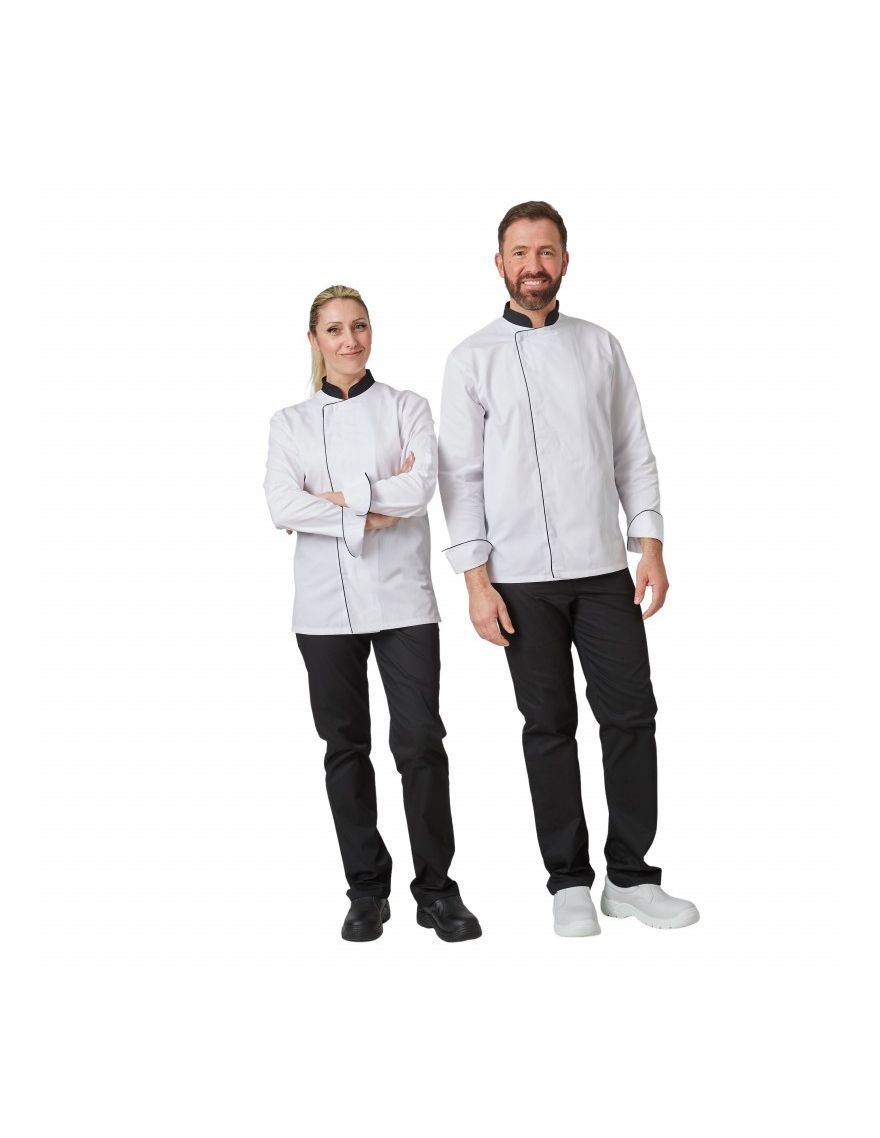 La Veste de cuisine mixte PBV - 27VENIS est un vêtement de cuisine conçu pour offrir confort et praticité au quotidien. Avec sa fermeture à pressions cachées, elle permet un enfilage rapide et sécurisé, en offrant un design raffiné.