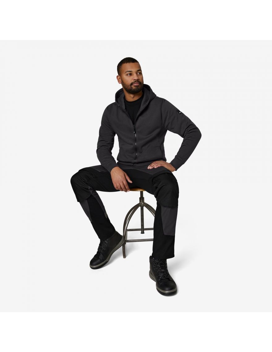 Le pantalon de travail mixte gris anthracite FHB - LEO est confortable, fonctionnel et résistant. Ajusté, il garantit une liberté de mouvement grâce à ses empiècements élastiques en 3D-Frinlock aux fesses, à l'entrejambe et aux genoux.