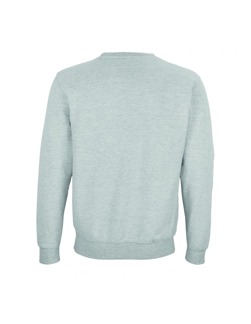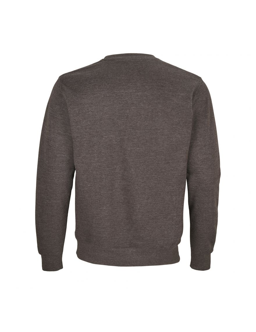 Sweat-shirt unisexe COLUMBIA de SOL'S. Confectionné en molleton gratté d'un grammage de 280 g/m², il est composé à 80% de coton et à 20% de polyester recyclé. Des variations de composition existent pour certains coloris spécifiques : le gris chiné contient 73% de coton, 20% de polyester recyclé et 7% de viscose, tandis que l'anthracite chiné est composé de 60% de coton et 40% de polyester recyclé.