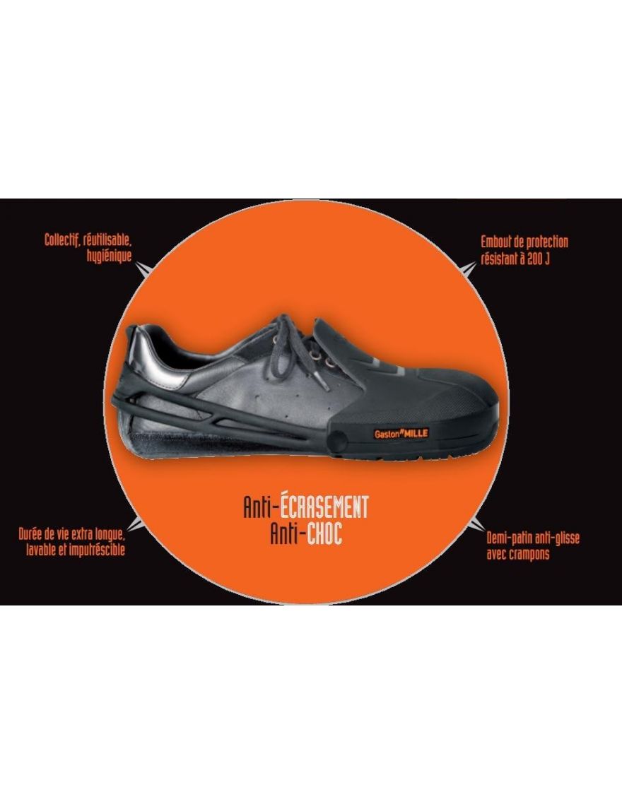 S'adaptant facilement sur la plupart des modèles de chaussures de ville, la surchaussure permet de protéger les orteils de vos visiteurs contre les chocs et les risques d'écrasement.