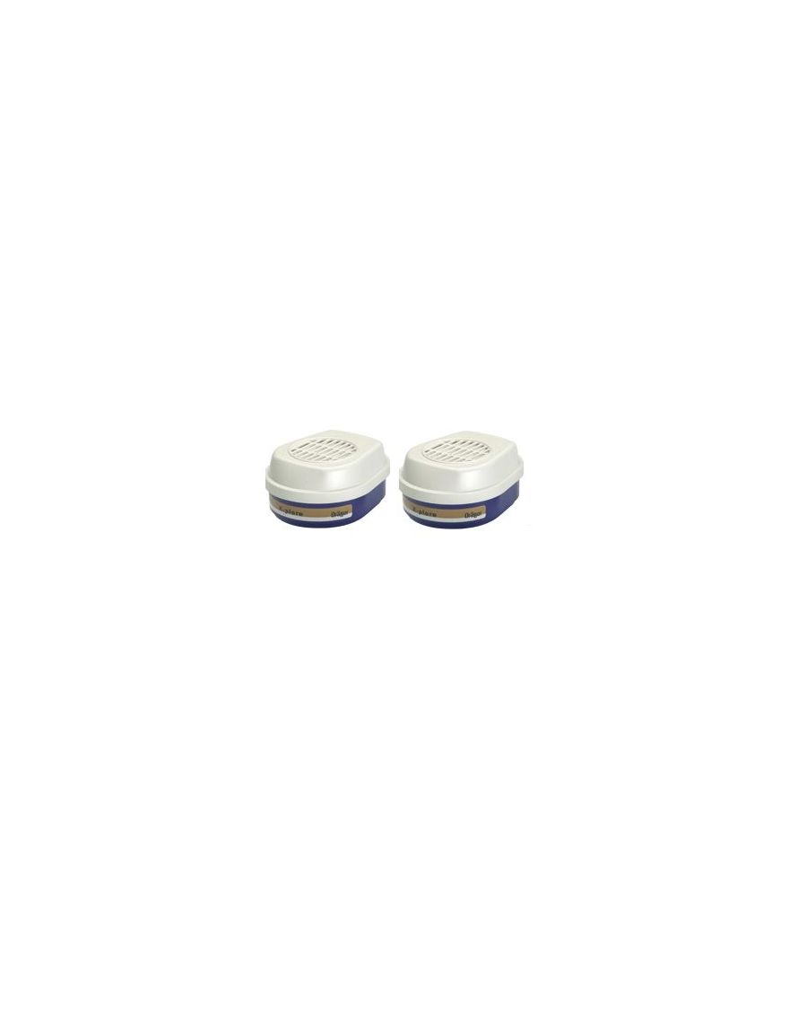 Lot de 2 filtres ABEK1HGP3 : Contre certains gaz et vapeurs organiques ayant un point d'ébullition supérieur à 65°c; contre certains gaz et vapeurs inorganiques sauf le monoxyde de carbone; contre le dioxyde de soufre et autres gaz et vapeurs acides.