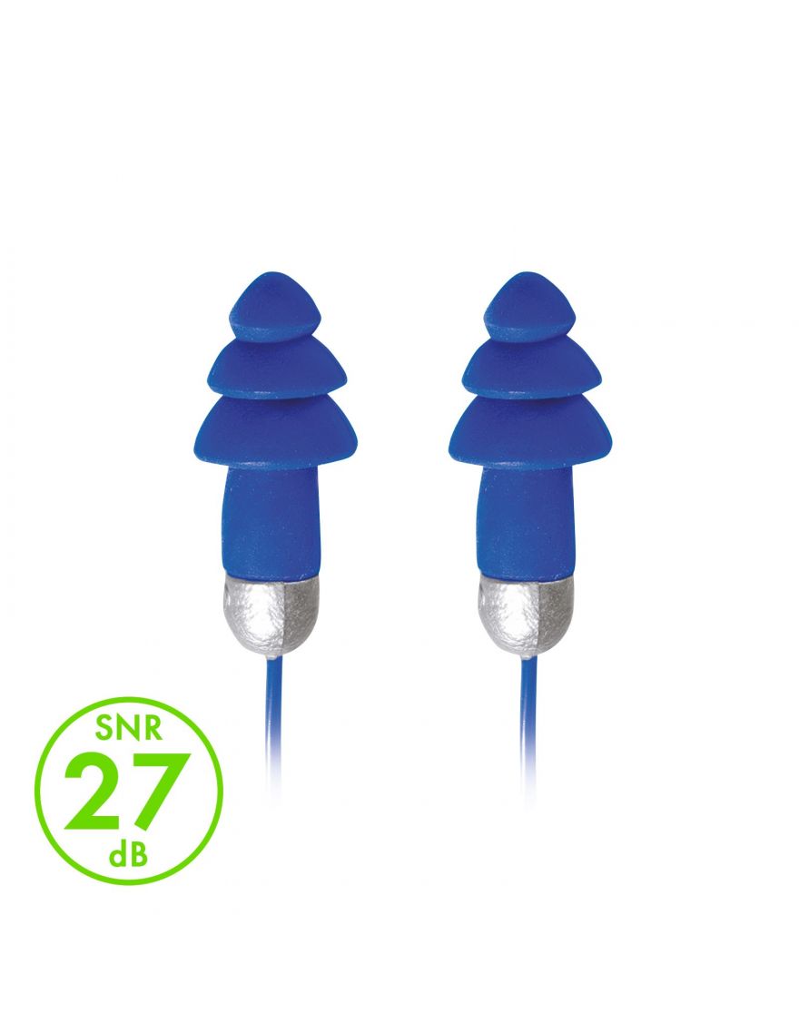 Bouchons réalisés dans une matière souple et durable - lavables et hygiéniques. Ajustement agréable. Une bille métallique noyée dans les bouchons rendent ce protecteur auditif entièrement détectable. Bouchons réutilisables sont livrés dans une boîte de rangement. Performances : SNR = 27 dB, H = 28 dB, M = 23 dB, L = 22 dB.