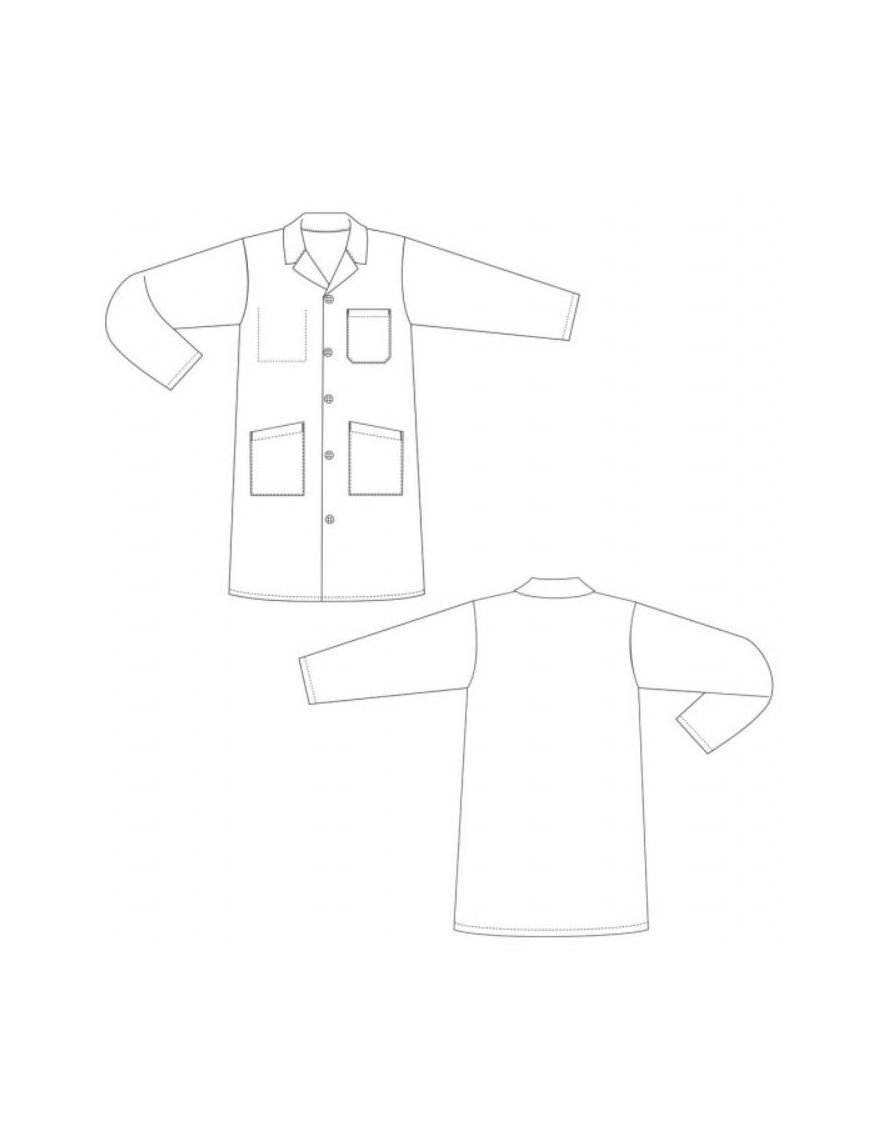 La blouse de travail homme PBV - 12AB110 présente une fermeture par quatre boutons, et des poignets droits.