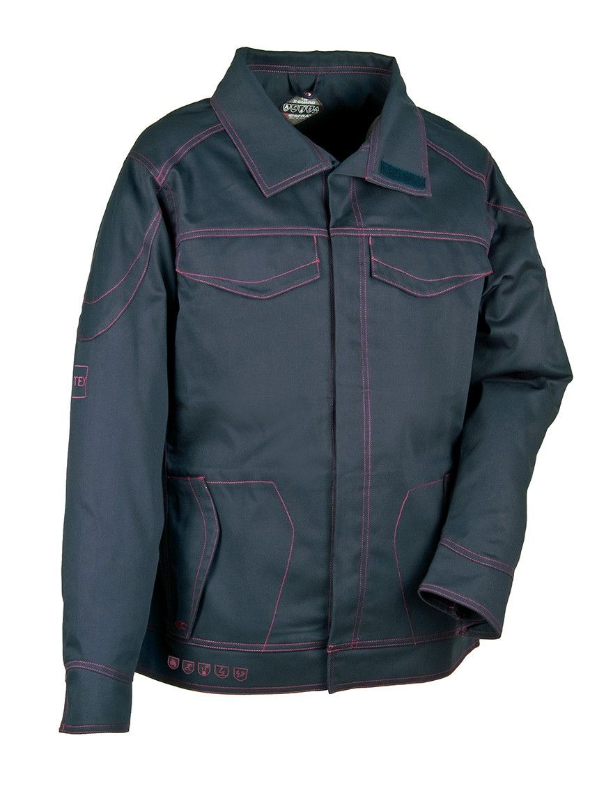 Elle est dotée de pictogrammes brodés au bas de la veste et d’une broderie “ATEX” sur la manche droite.